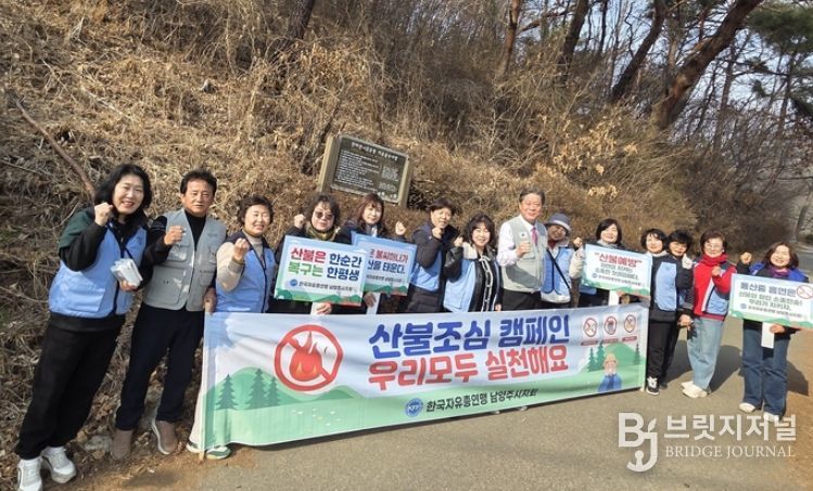 브릿지저널 김경미 기자 | 남양주시는 지난 16일 호평동 천마산 일대에서 한국자유총연맹 남양주시지회 여성회가 봄철 산불 예방과 시민 인식 제고를 위한 산불조심 캠페인을 실시헸다고 19일 밝혔다.