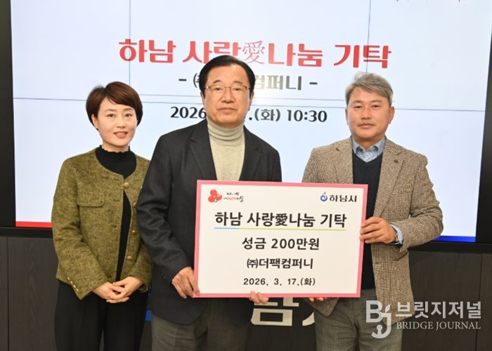 브릿지저널 김경미 기자 | 지난 17일, 하남시에 소재한 ㈜더팩컴퍼니는 지역사회 취약계층을 지원하기 위해 성금 200만원을 하남시에 기탁했다.