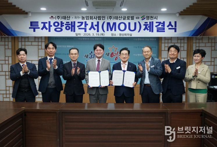 브릿지저널 정보영 기자 | 영천시는 19일 시청 영상회의실에서 ㈜태산과 농업회사법인 ㈜태산글로벌과 220억원 규모의 투자협약(MOU)을 체결했다.