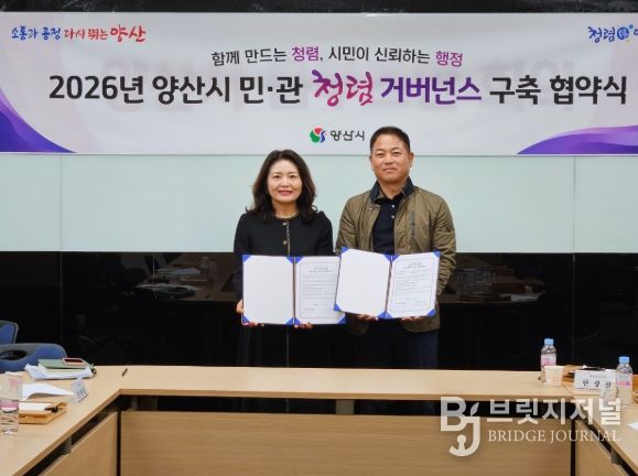 브릿지저널 김경미 기자 | 양산시는 19일 투명하고 신뢰받는 행정 구현을 위해 양산시 옴부즈만과 ‘2026년 양산시 민·관 청렴 거버넌스 구축 협약’을 체결했다.