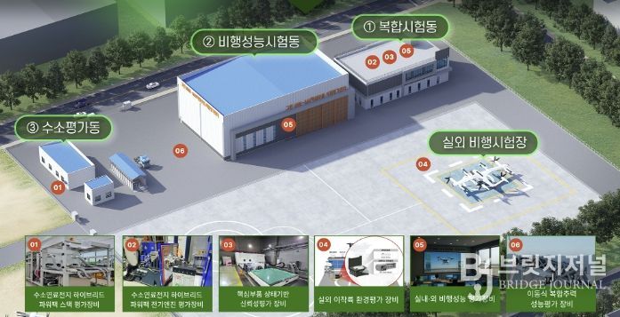 완공되면 실외 이착륙 환경 평가 장비, 핵심부품 상태 기반 신뢰성 평가 장비 등 6종의 수소전기 미래항공기체(AAV)용 고성능 평가 장비가 도입된다.