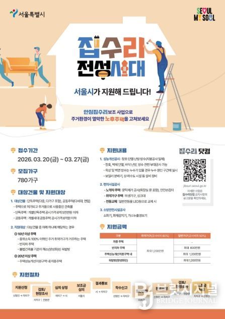 브릿지저널 김경미 기자 | 영등포구가 노후주택 거주자의 주거환경 개선을 위해 집수리 비용을 지원하는 ‘2026년 안심 집수리 보조사업’ 참여자를 20일부터 27일까지 모집한다고 밝혔다.