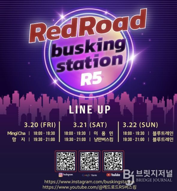 3월 20일부터 22일까지 레드로드 R5 버스킹존에서는 오후 6시부터 9시 보컬과 댄스 등 다채로운 장르의 공연이 시간대별로 펼쳐져 주말 내내 방문객의 발길을 사로잡을 예정이다.