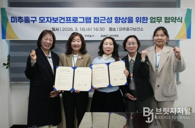 브릿지저널 김경미 기자 | 미추홀구 숭의보건지소는 지난 19일 아인병원 마더비문화원과 ‘모자보건 프로그램 접근성 향상을 위한 업무협약’을 체결했다고 밝혔다.