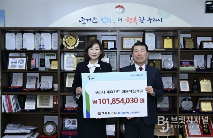 브릿지저널 김경미 기자 | 구리시는 지난 3월 19일 시청에서 NH농협은행과 함께 ‘법인카드 이용적립금 전달식’을 개최했다고 밝혔다.