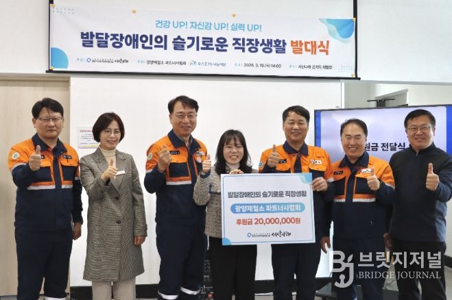 이번 사업은 광양제철소 파트너사협회(회장 김윤철)의 후원으로 추진되며, 서산나래 소속 발달장애인 근로자 22명을 대상으로 건강한 직장생활과 지속적인 근로활동을 지원하기 위해 후원금 2천만 원이 전달됐다.