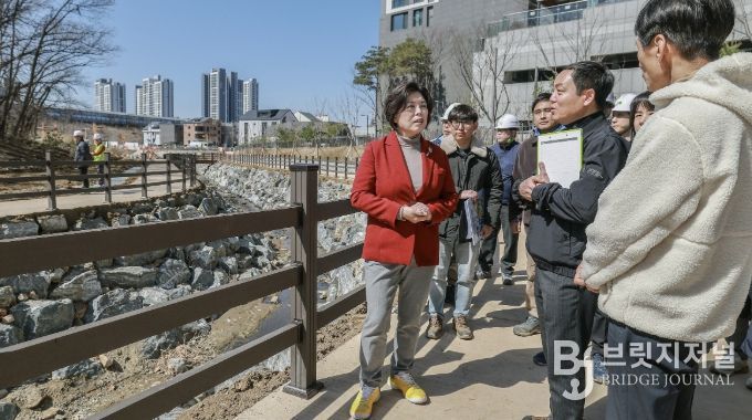 브릿지저널 김경미 기자 | 과천시는 지난 19일 지식정보타운 내 제비울천 산책로 조성 공사 현장을 방문해 시설물 상태와 안전성을 점검했다.