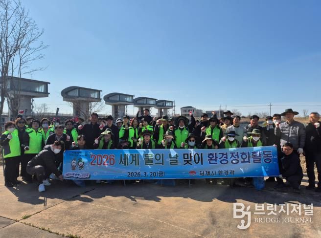 브릿지저널 윤나영 기자 | 김제시는 세계 물의 날(3월 22일)을 맞아 20일 원평천 일대에서 시민단체와 함께 하천 정화활동을 실시하며 물 환경보전과 물의 소중함을 알리는 활동을 펼쳤다고 밝혔다.