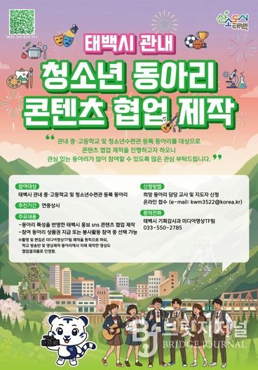 브릿지저널 윤나영 기자 | 태백시는 청소년의 자발적인 참여를 통해 지역의 다양한 매력을 홍보하고, 미디어 제작 경험을 확대하기 위해 ‘청소년 동아리 콘텐츠 협업 제작 사업’을 연중 추진한다.