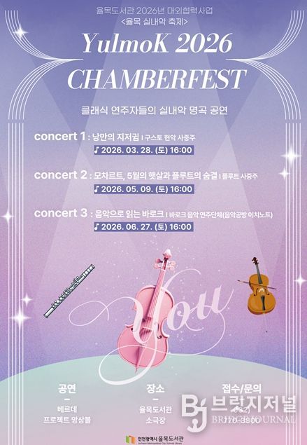 브릿지저널 김경미 기자 | 인천광역시는 율목도서관에서 지역 주민들이 일상 가까이에서 클래식 음악을 즐길 수 있도록‘율목 실내악 축제 'Chamberfest 2026'’을 개최한다고 밝혔다.
