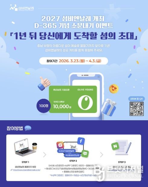 브릿지저널 정보영 기자 | 섬비엔날레조직위원회는 3월 23일부터 4월 3일까지 약 2주간 섬비엔날레 개최 D-365일을 맞아 대국민 온라인 참여 이벤트를 진행한다고 밝혔다.