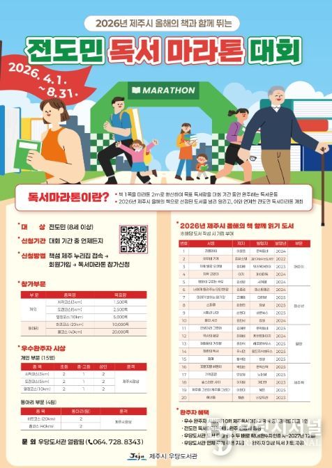 이번 대회는 ‘제주시 올해의 책’과 연계해 추진하는 전 도민 참여형 행사로, 책 읽기를 마라톤처럼 꾸준히 실천할 수 있도록 기획됐다. 책 1쪽을 2m로 환산해 개인별 목표 거리를 설정하고, 일정 기간 독서를 통해 목표를 달성하는 방식으로 운영된다.