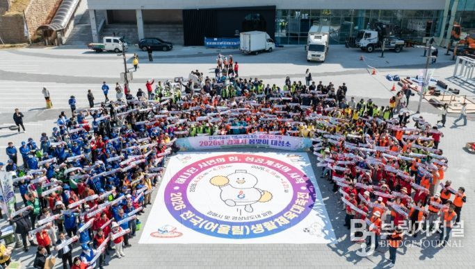 브릿지저널 김경미 기자 | 김해시는 ‘2026 전국(어울림)생활체육대축전’을 앞두고 선수단과 방문객들에게 쾌적하고 안전한 도시 이미지를 제공하기 위해 23일 오전 11시 경기가 펼져질 김해종합운동장 일원에서 대규모 민관 합동 대청소를 실시했다.