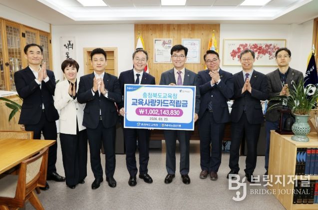 브릿지저널 김경미 기자 | 충북교육청은 23일, NH농협은행 충북본부(본부장 이봉주)와 충북교육청 소속 학교 및 기관의 충북교육사랑카드 사용에 따라 조성된 적립금 전달식을 가졌다.