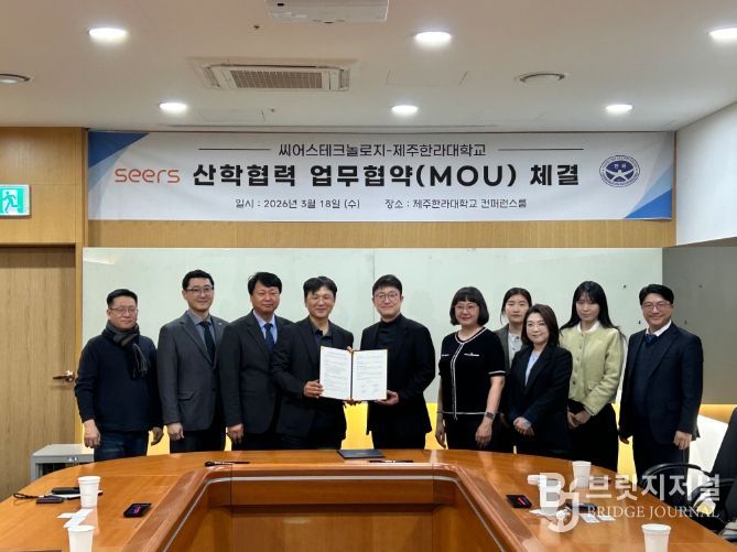 브릿지저널 정보영 기자 | 제주한라대학교(총장 김성훈)는 3월 18일 ㈜씨어스테크놀로지와 AI 기반 디지털 헬스케어 인재양성을 위한 업무협약(MOU)을 체결했다고 밝혔다.