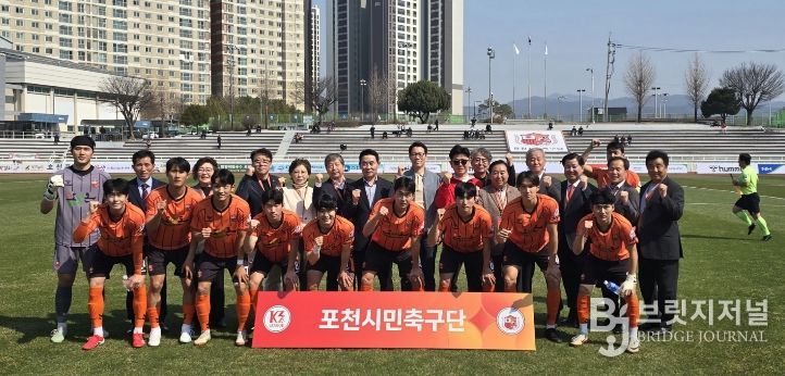 브릿지저널 김경미 기자 | 포천시는 포천시민축구단이 지난 22일 열린 2026 케이(K)3리그 홈 개막전에서 경주한수원축구단을 2대1로 제압하며 값진 승리를 거뒀다고 밝혔다.