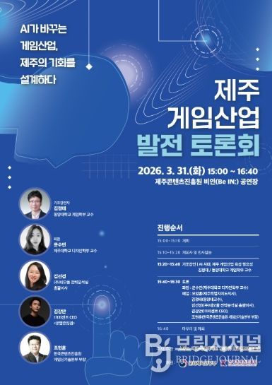 브릿지저널 정보영 기자 | 제주특별자치도가 인공지능(AI) 시대 게임산업을 새로운 성장동력으로 육성하기 위한 토론회를 오는 31일(화) 오후 3시 제주콘텐츠진흥원 비인(BeIN;)공연장에서 개최한다.