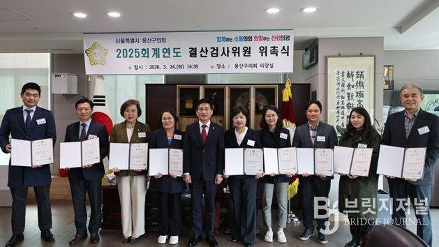 브릿지저널 김경미 기자 | 용산구의회는 3월 24일 의장실에서 2025회계연도 결산검사위원 위촉장 수여식을 개최하고 본격적인 결산검사 일정에 돌입했다.