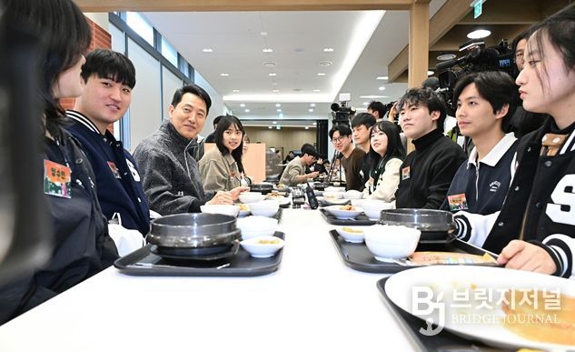 브릿지저널 김경미 기자 | 오세훈 서울시장은 24일 오후 12시, 숭실대학교 학생회관을 찾아 대학생들과 함께 식사하며 고민을 청취하고 ‘서울 청년정책 꿀팁버스’ 부스에서 직접 상담하며 청년들과 소통했다.