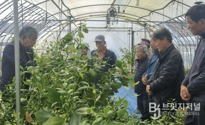 브릿지저널 김경미 기자 | 옥천군농업기술센터는 아열대작물 연구회 회원 10여 명을 대상으로 감귤류 및 만감류 재배기술과 전정(가지치기) 관련 현장 교육을 실시했다고 밝혔다.