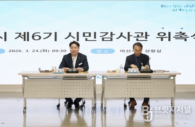 브릿지저널 정보영 기자 | 아산시는 24일 시청 상황실에서 제6기 시민감사관 위촉식을 열고 시민 참여 기반의 감사행정 운영에 본격적으로 나섰다.
