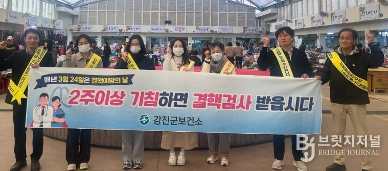 브릿지저널 김경미 기자 | 강진군이 3월 24일 ‘결핵 예방의 날’을 맞아 군민들의 결핵 예방수칙 실천을 독려하고 결핵 조기검진의 중요성을 알리고자 지난 24일 강진읍 시장에서 결핵 예방·퇴치 캠페인을 실시했다.
