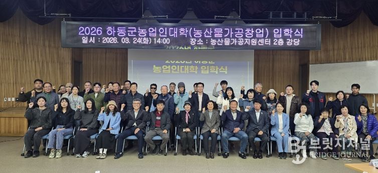 브릿지저널 김경미 기자 | 하동군은 지난 24일 농업기술센터 내 농산물가공지원센터 대강당에서 ‘2026년 하동군 농업인대학 입학식’을 개최했다고 밝혔다.