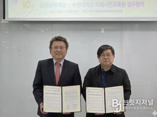 브릿지저널 윤나영 기자 | 재단법인 금정문화재단과 부산대학교 미래시민교육원은 지난 19일, 부산 지역의 문화·예술 및 평생교육 저변 확대를 위한 업무협약(MOU)을 체결했다고 밝혔다.