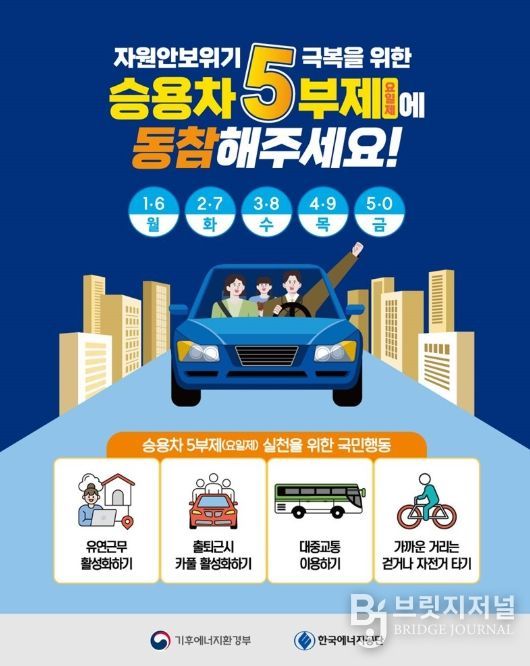 브릿지저널 김경미 기자 | ■ 자원안보위기 극복을 위한 승용차 5부제(요일제)에 동참해주세요!