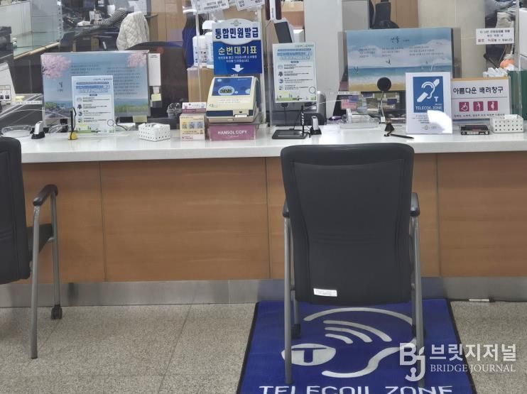 민원 창구에 설치된 장치를 통해 직원의 음성이 자기장 신호로 변환되어 보청기 수신기(T코일)를 통해 직접 전달된다.