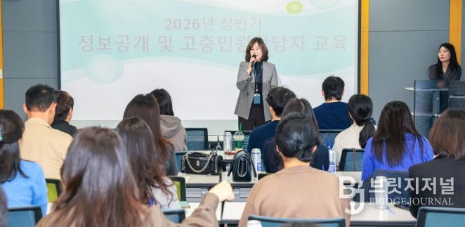 브릿지저널 윤나영 기자 | 전북특별자치도교육청은 25일 창조나래 5회의실에서 본청, 교육지원청 및 직속기관 민원행정담당자 50여 명을 대상으로 ‘2026년 상반기 정보 공개 및 민원 담당 공무원 직무교육’을 실시했다.