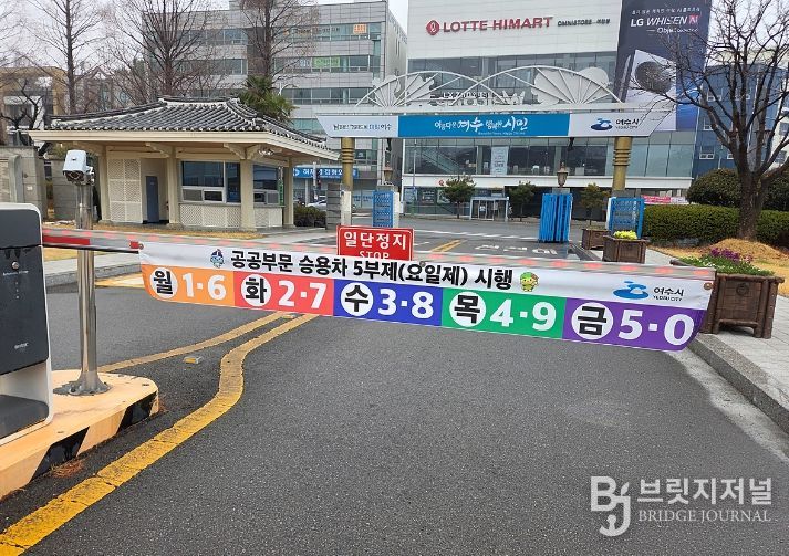 브릿지저널 김경미 기자 | 여수시는 국제 정세에 따른 국제 에너지 수급 불확실성에 대응하고 국가적 자원안보 노력에 동참하기 위해 3월 25일부터 시청 전 직원을 대상으로 차량 5부제를 의무 시행한다고 밝혔다.