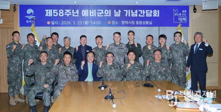 브릿지저널 김경미 기자 | 평택시는 지난 23일 오후 2시, 평택시청 종합상황실에서 지역 방위의 핵심 주역인 예비군 지휘관들을 초청하여 ‘제58주년 예비군의 날 기념 간담회’를 개최했다.