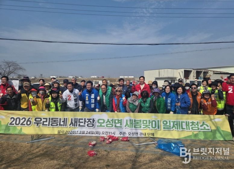 브릿지저널 김경미 기자 | 평택시 오성면은 지난 24일 오성강변로 일대에서 ‘우리동네 새단장’캠페인의 일환으로 새봄맞이 일제대청소를 진행했다.