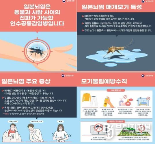 이정헌 보건소장은 “일본뇌염은 모기에게 물리지 않는 것이 최선의 예방법”이라며 “야외 활동 시 예방 수칙을 철저히 준수하고 국가필수 예방접종 대상 아동은 반드시 접종을 완료해 주시길 바란다”고 당부했다.