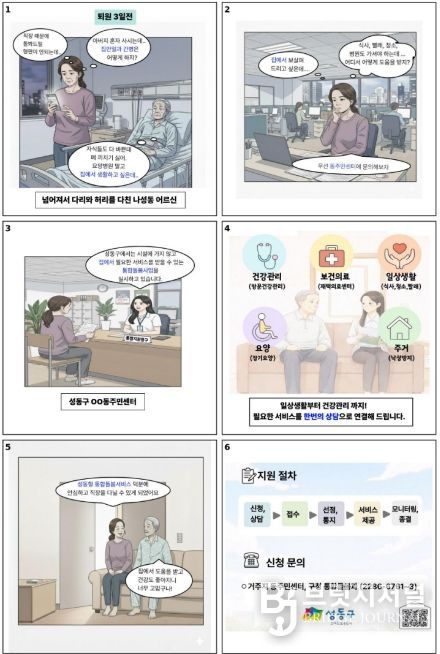 구 관계자는 “돌봄이 필요한 어르신과 가족들이 통합돌봄 사업에 쉽게 접근할 수 있도록 실제 사례를 담은 웹툰 등 다양한 방법을 통해 알리고 있다”며, “앞으로도 성동의 어르신들이 살던 곳에서 더 오래, 더 건강하고 행복하게 생활할 수 있도록 통합돌봄 체계를 지속적으로 강화해 나가겠다”고 말했다.