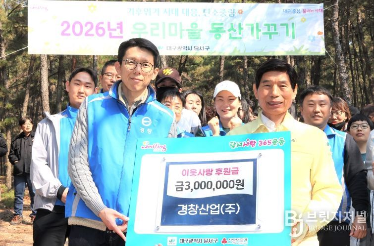 브릿지저널 김진석 기자 | 대구 달서구는 경창산업㈜(대표 손일호, 차석주)으로부터 이웃사랑 후원금 300만 원을 기탁받았다고 26일 밝혔다.