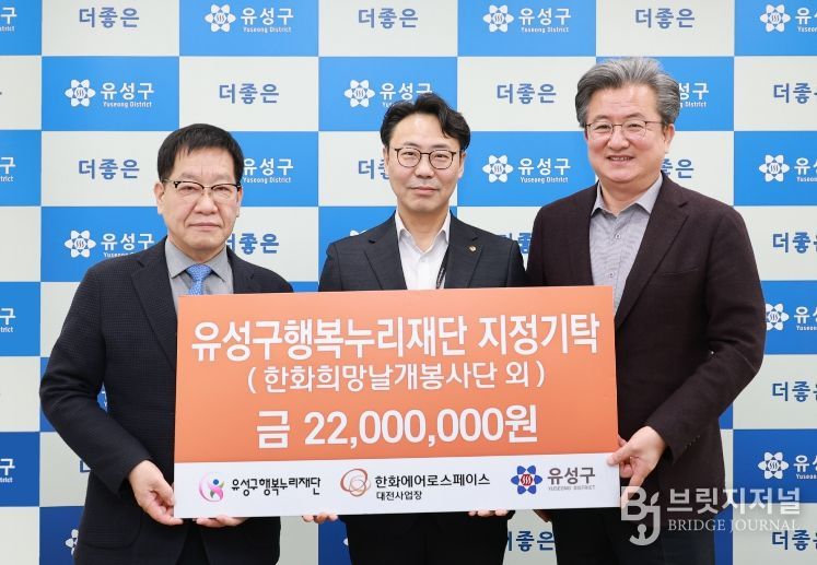 협약식에 이어 한화에어로스페이스 대전사업장은 총 2,200만 원을 유성구행복누리재단에 기탁했다. 이 가운데 1,200만 원은 주거 환경 개선 사업, 500만 원은 저소득층 지원 사업, 나머지 500만 원은 유성구 행복네트워크의 ‘사랑의 김장 나누기’ 행사에 활용될 예정이다.