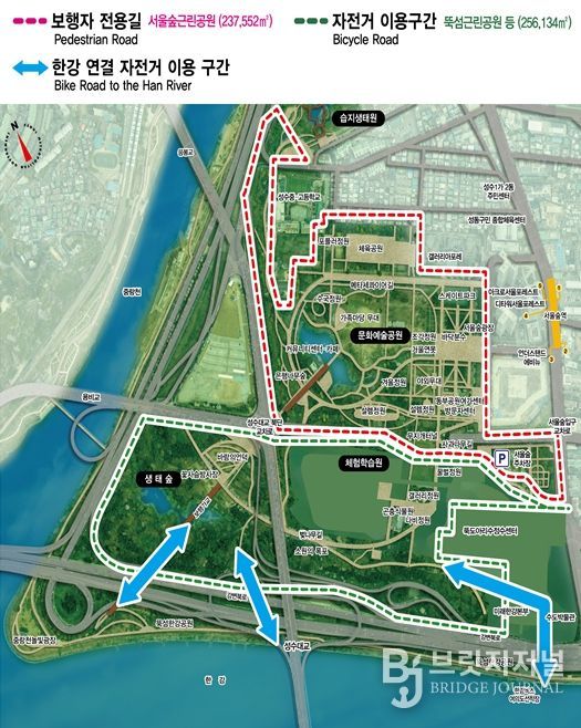 브릿지저널 김경미 기자 | 서울시는 서울숲근린공원 내 보행 안전 및 쾌적한 공원 이용을 위해 공원길 총 22,747.6m을 ‘보행자전용길’로 3월 26일부터 지정한다고 밝혔다.