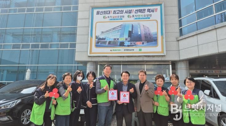 브릿지저널 윤나영 기자 | 울주군 범서읍 지역사회보장협의체가 26일 범서읍 신규 착한기업 ㈜화수목과 착한가게 효자행복요양원을 방문해 현판 전달식을 가졌다.