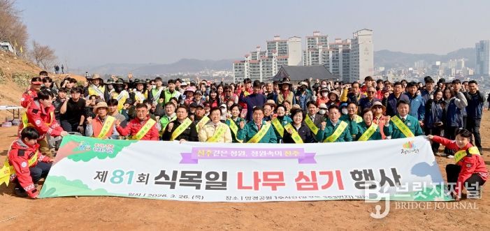 브릿지저널 김경미 기자 | 진주시는 26일 식목일을 맞아 망진산 일원에서 ‘제81회 식목일 나무 심기 행사’를 개최했다.