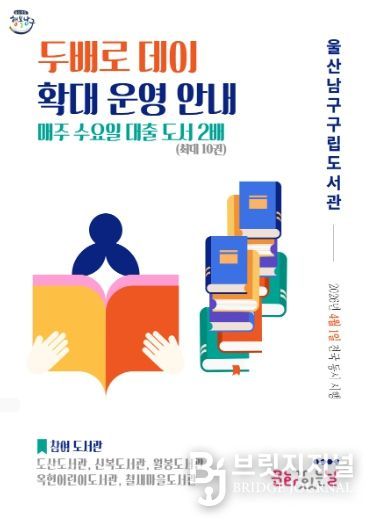 브릿지저널 윤나영 기자 | 울산 남구는 시민들의 독서 문화 확산과 도서관 이용 활성화를 위해 ‘두배로 데이’를 기존 월 1회에서 주 1회로 확대 운영한다.