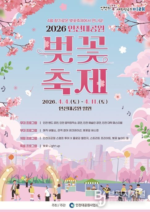 이번 축제는 인천을 대표하는 벚꽃 명소인 인천대공원에서 개최되며, 기존 2일간 진행되던 행사에서 한층 확대된 ‘벚꽃맞이 주간 행사’로 기획됐다. 벚꽃 개화기간 동안 공원을 찾는 시민들이 봄의 정취를 더욱 여유롭게 만끽할 수 있도록 8일간 운영된다.