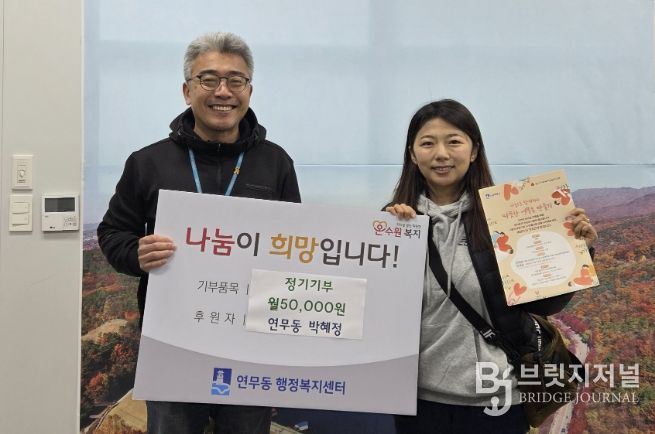 브릿지저널 김경미 기자 | 수원시 장안구 연무동은 지난 23일, 관내에 15년째 거주하고 있는 외국인 가족이 어려운 이웃을 위해 써달라며 매월 정기후원을 약정했다는 훈훈한 소식을 전했다.