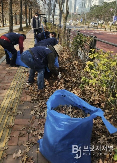 이번 환경정비는 2개 조로 나누어 법조로149번길(5블록 일대) 이면도로 및 보행로 청소, 광교호수공원길 잔여 낙엽 처리 등을 중심으로 진행됐다. 또한 잘못된 분리배출로 미수거된 폐기물을 재분리하고 무단투기 및 종량제 봉투 미사용 등 위법행위를 계도하는 활동도 진행했다.