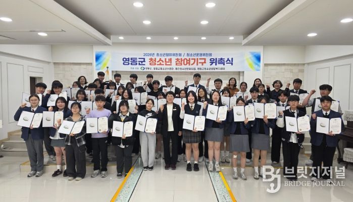 브릿지저널 김경미 기자 | 충북 영동군은 27일 영동군 여성회관 예식장에서 관내 청소년들의 권익 증진과 정책 참여를 이끌 ‘2026년 영동군 청소년 참여기구 위촉식 및 간담회’를 개최했다.