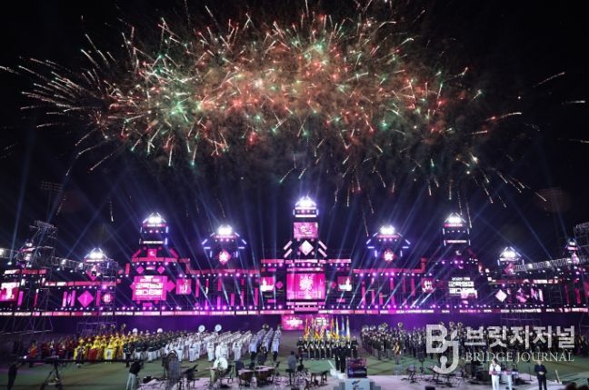 1963년 시작된 진해군항제는 올해로 64회를 맞은 대한민국 대표 봄꽃 축제로 성장해왔다. 개막식은 홍보영상 상영과 식전공연을 시작으로, 육·해·공군 등 12개 팀 기수단 입장, 개막선언, 군악대 합동 연주, 개막 불꽃쇼 순으로 진행됐다.