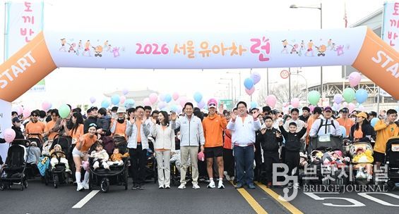 브릿지저널 김경미 기자 | 오세훈 서울시장은 28일 오전 8시 광화문광장에서 열린 ‘2026 유아차 런(Run)’에 참석해 5천여 가족에게 응원 메시지를 전하고 여의도공원까지 안전하게 달려줄 것을 당부했다.