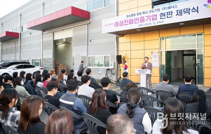 브릿지저널 정보영 기자 | 구미시는 지난 26일 ㈜베닉스에서 ‘구미시 여성친화기업 인증 현판 제막식’을 개최하고 여성 친화적 근무환경 확산에 나섰다.