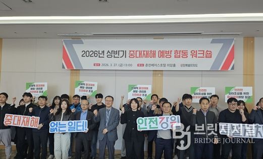 브릿지저널 윤나영 기자 | 강원특별자치도는 3월 27일 오후 1시 춘천 베어스호텔에서 도·시군, 고용노동부 등 관계자 50여 명이 참석한 가운데 ‘2026년 상반기 중대재해 예방 합동 워크숍’을 개최했다. 이번 워크숍은 중대재해처벌법 엄정 대응 기조에 맞춰 실질적인 사고 예방과 현장 실무자의 대응 역량 강화를 위해 마련됐다.